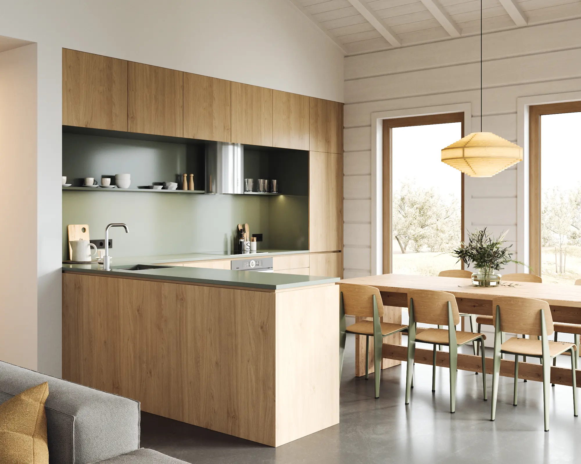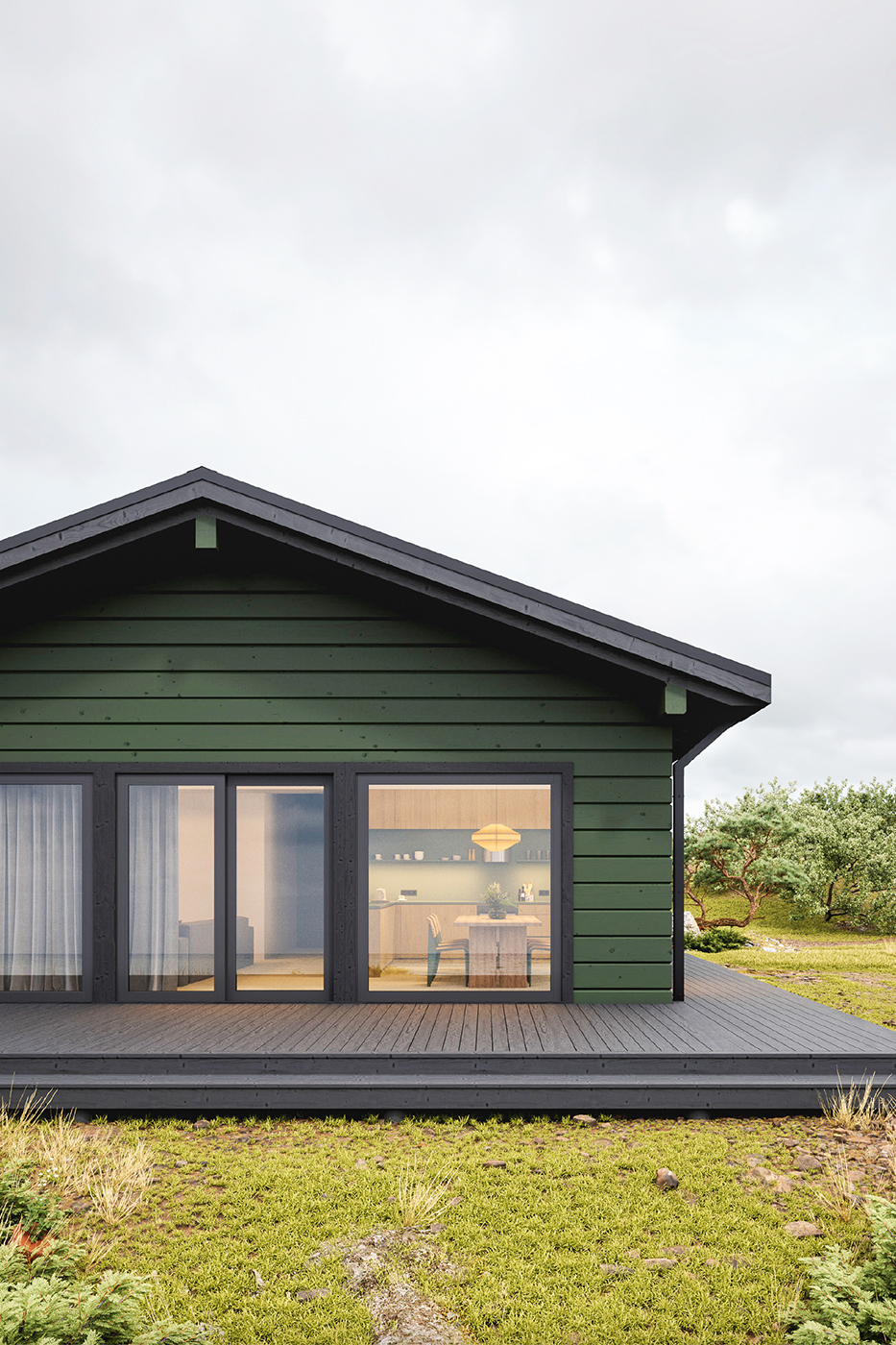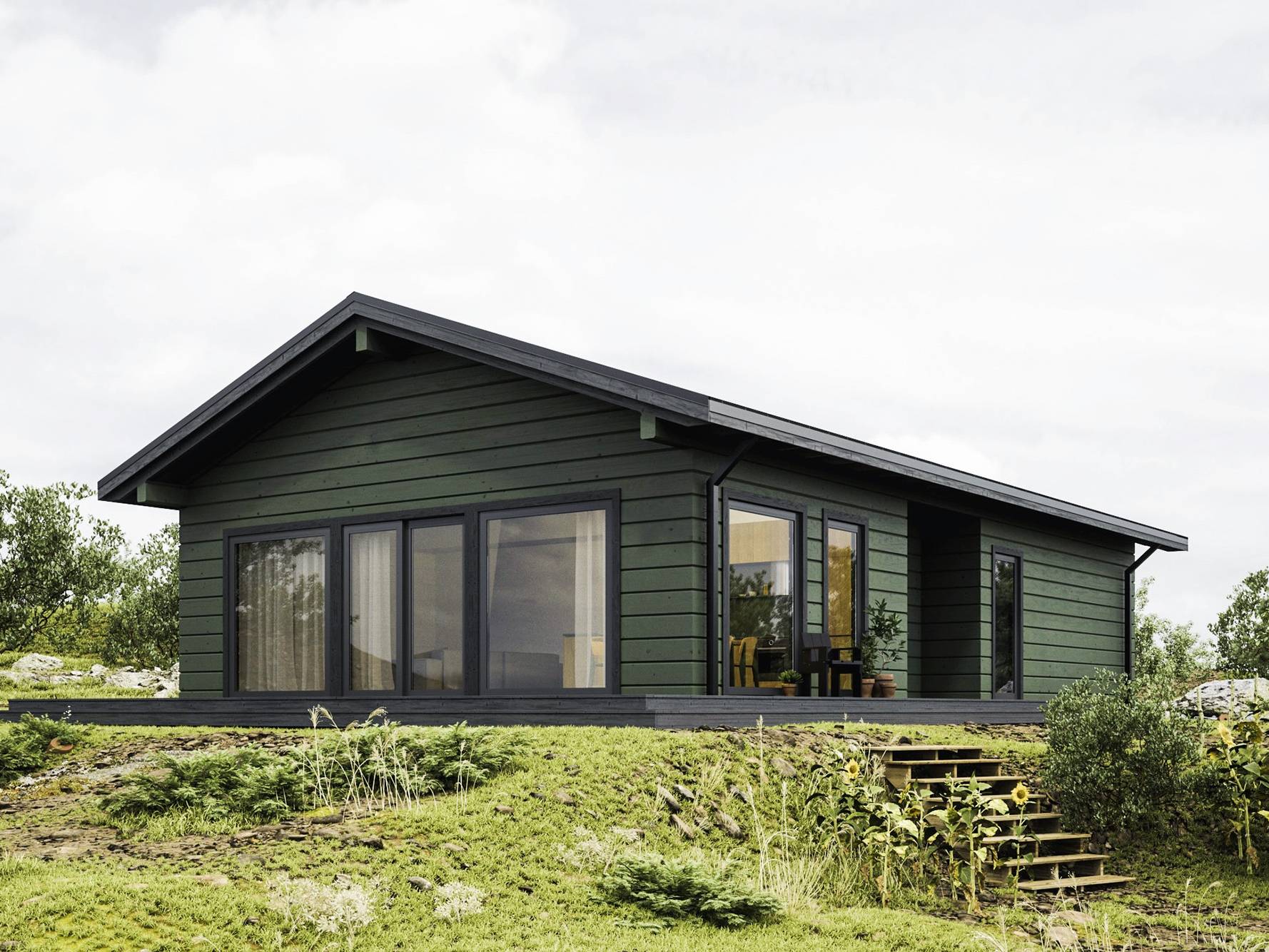 Šeit māja veidota frēzbaļķi, izvēloties minimālistisko ZEN stūra savienojumu. To iespējams aizvietot ar tradicionālo dzeguļu stūra savienojumu vai arī frēzbaļķu konstrukciju vietā izvēlēties koka karkasa paneļus.