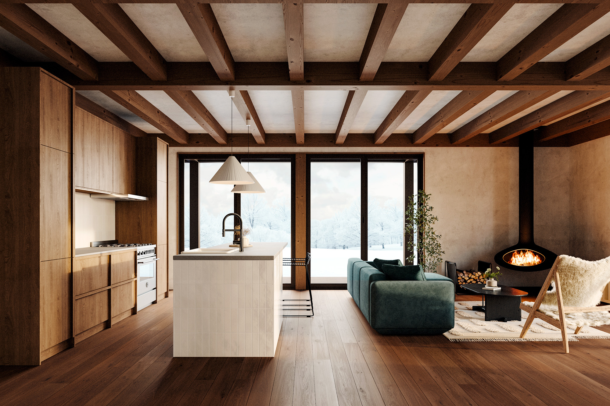 Constructed with modern glulam logs, the space is filled with the warmth and coziness of natural wood, both inside and out. Meanwhile, timber framing offers the flexibility to substitute interior walls with alternative materials, enabling a personalized touch based on your preference.